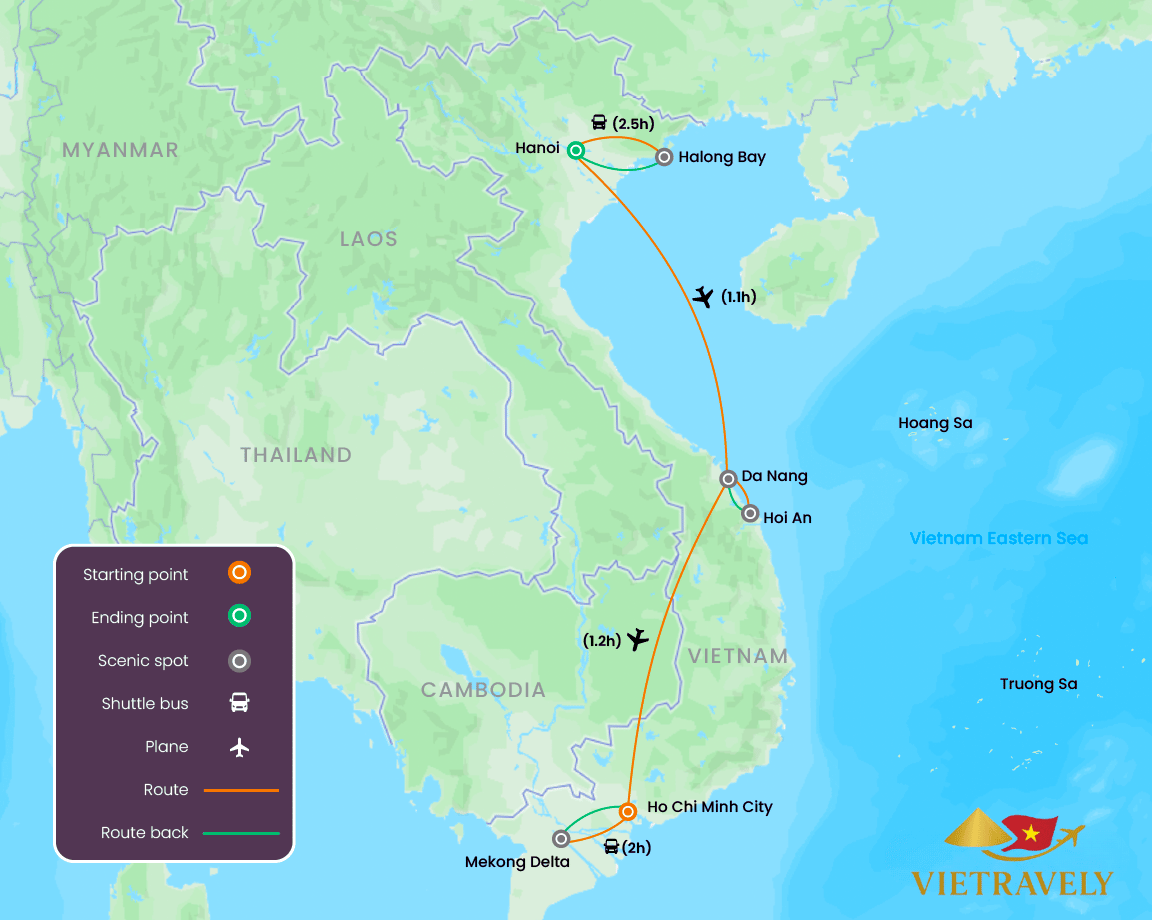 ◆ Domestic flights: Hanoi → Da Nang & Hue → Ho Chi Minh City